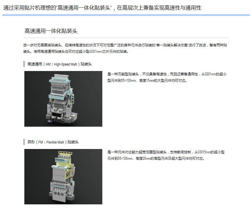 3."高速通用一體化貼裝頭”同時實現(xiàn)高速性與通用性,提供理想的解決方案".