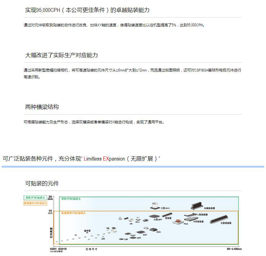2.大幅升級“高速通用一體化貼裝頭”,在世界同級別產(chǎn)品中高水平的多功能型表面貼片機(jī).