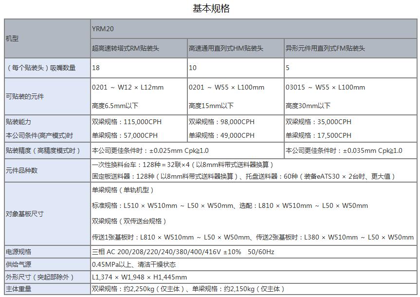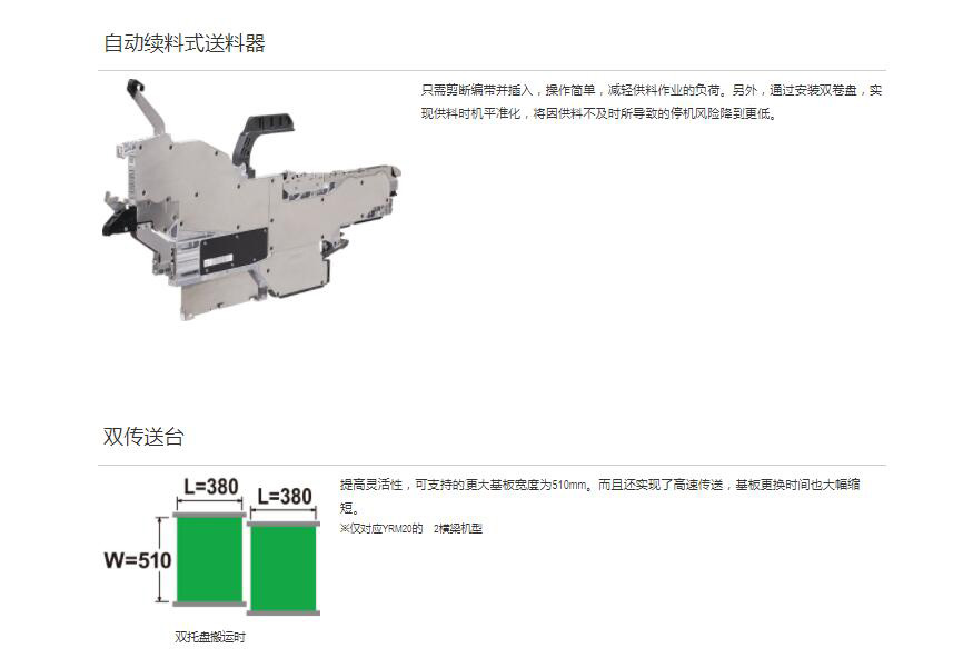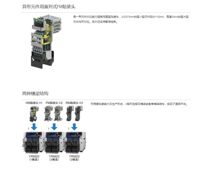 YRM20高效模塊貼片機(jī) 極 限改進(jìn)“單一貼裝頭解決方案”,具有卓絕生產(chǎn)率和通用性的萬 能型貼片機(jī)1.融合Σ系列產(chǎn)品的技術(shù),實(shí)現(xiàn)卓絕的生產(chǎn)率.2.采用“單一貼裝頭解決方案”,廣泛對(duì)應(yīng)各種生產(chǎn).3.標(biāo)準(zhǔn)配備可維持高品質(zhì)貼裝的各項(xiàng)功能.4.通過運(yùn)用豐富的功能群,實(shí)現(xiàn)高效生產(chǎn).